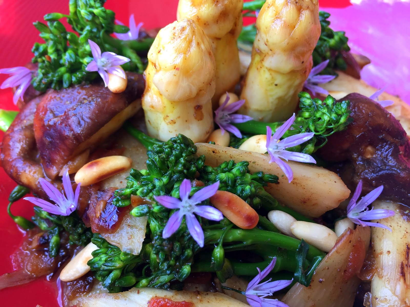 SALTEADO DE ESPARRAGOS, BIMI Y SHITAKES CON GARAM MASALA